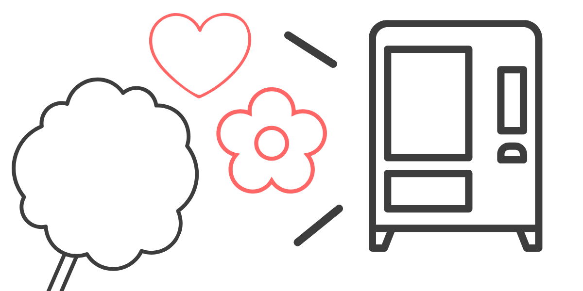 たった90分でお花やハートのわたあめが作れる、新自動販売機。
