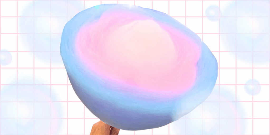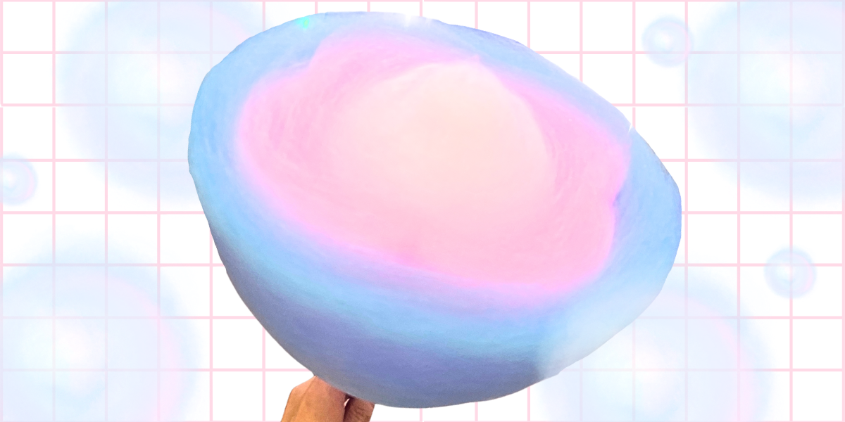 お花やハート型など豊富なデザインからお好きなわたあめを作れます。カラフルでかわいい見た目は子どもから大人まで人気です。